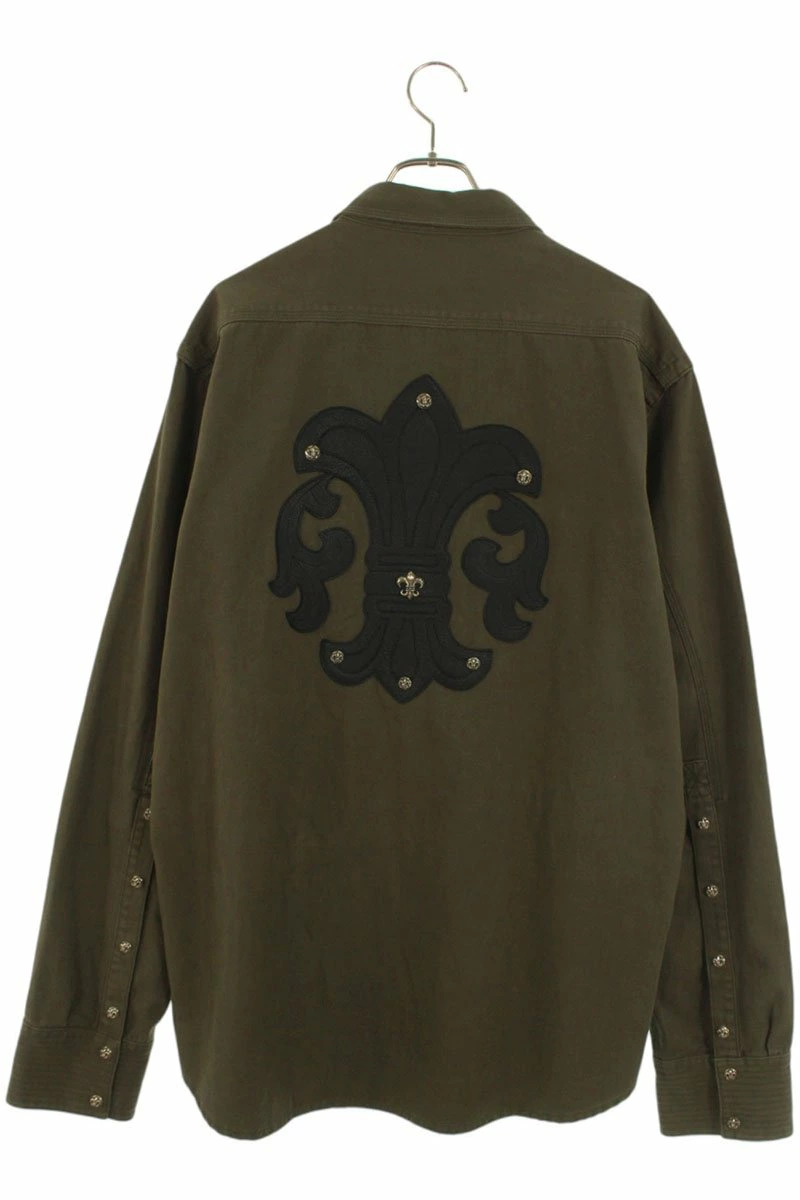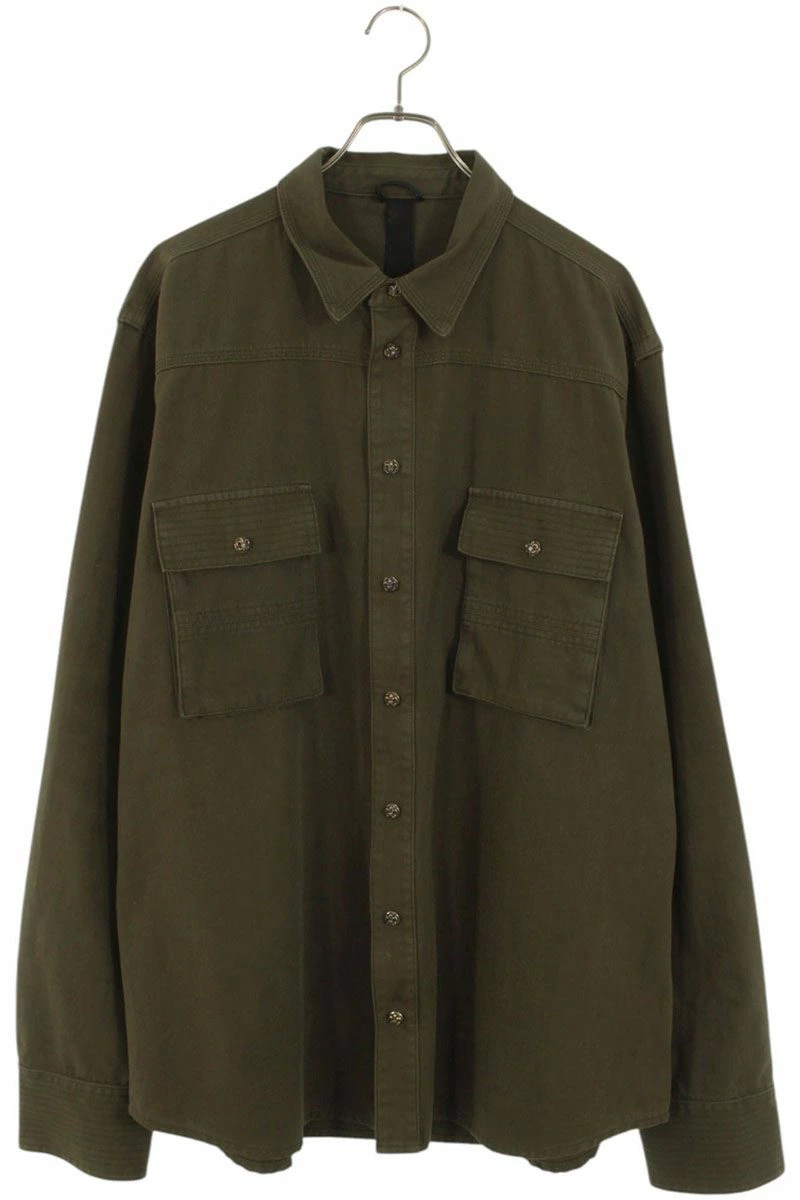 ランク:B (使用感がある商品)状態備考:フロント下部、襟元、袖口等に汚れがあります全体的に若干の色褪せがありますブランド:クロムハーツサイズ:XXL色:カーキ×シルバー実寸:肩幅50cm 身幅65.5cm 着丈84cm 袖丈72.5cm重さ:-素材:(表地) コットン (皮革部分) 牛革付属品:なしその他特徴:-管理番号:10312-250901-0022