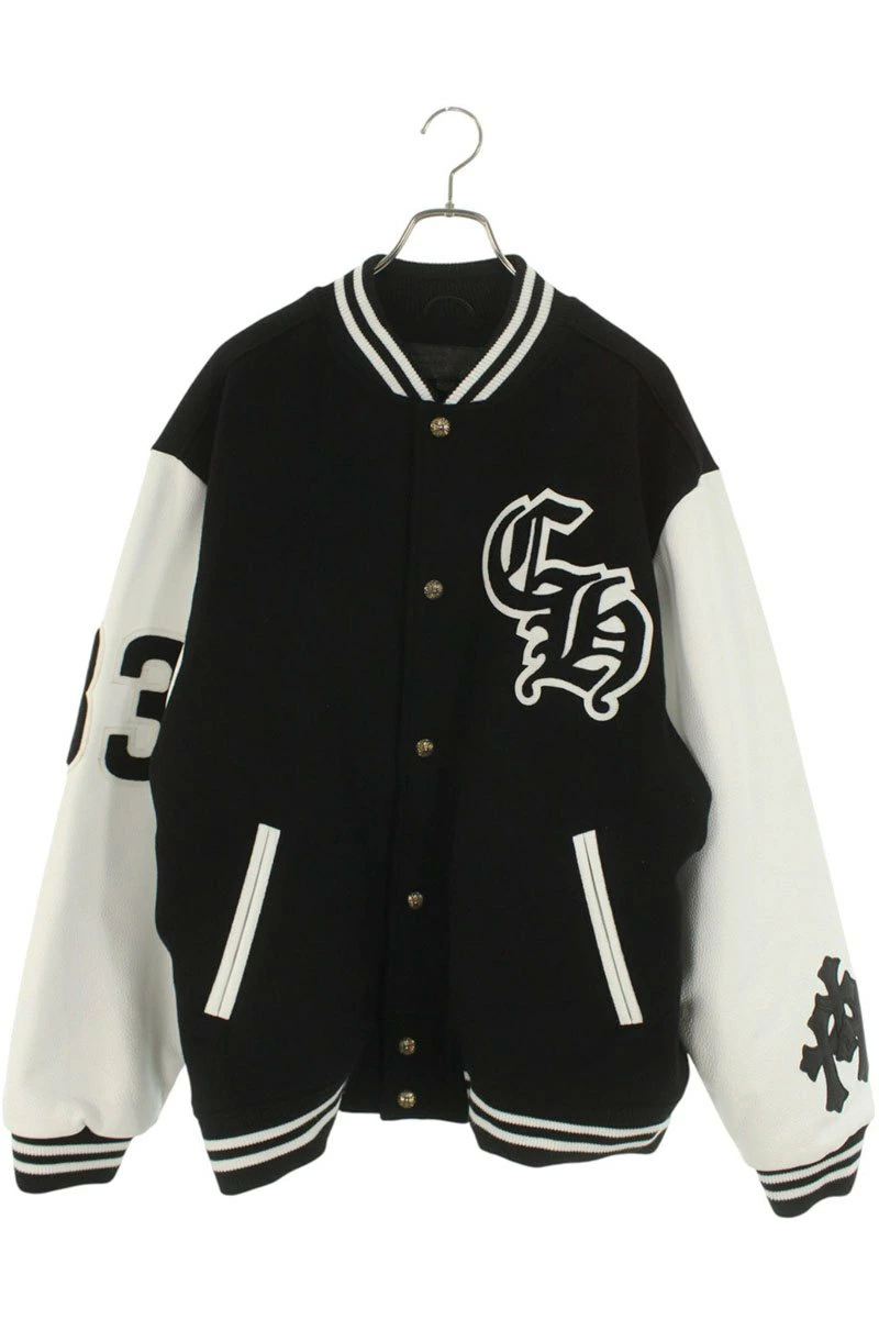 Chrome Hearts ChromeHearts Size: XXL 0 VARSITY 33 Cross Patch Leather Sleeve Stadium Jacket