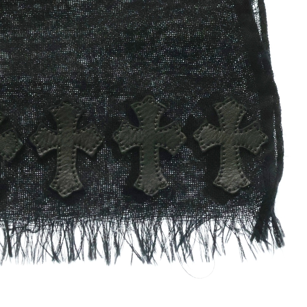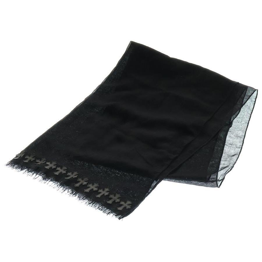 [モデル]クロスパッチ付きカシミア ストール スカーフ ブラック