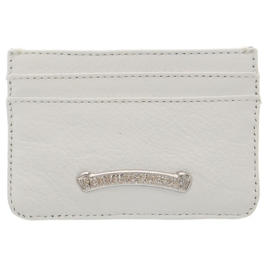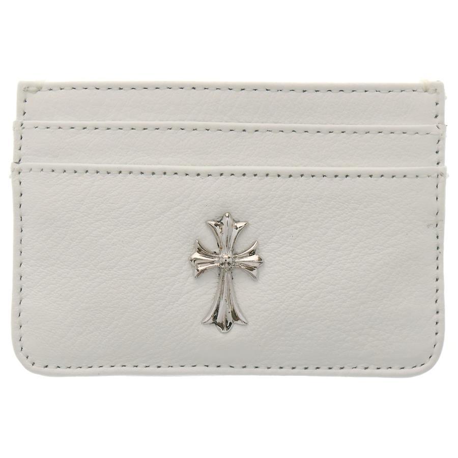 [モデル]DOUBLE SIDE ダブルサイド CHクロス装飾 レザーカードケース ホワイト