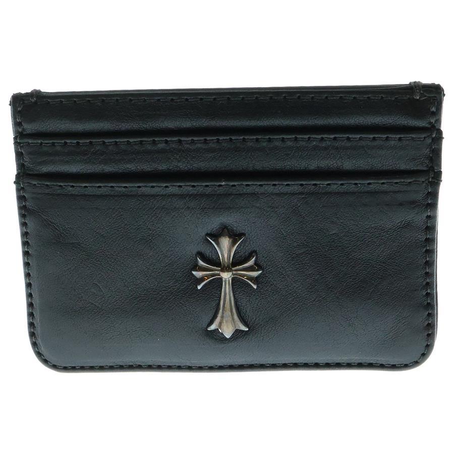 [モデル]DOUBLE SIDE ダブルサイド CHクロス装飾 レザーカードケース ブラック