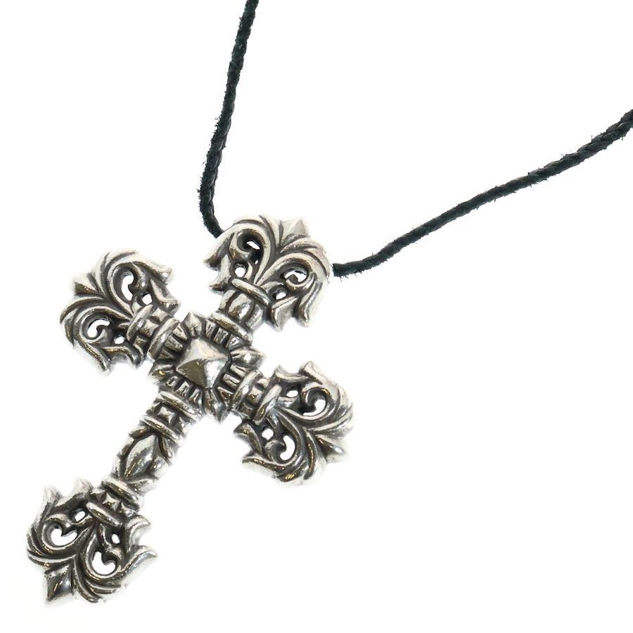 [モデル]FILIG CROSS-LARGE LB W/SPIKE ラージ フィリグリークロス レザーブレイド W/スパイクネックレス シルバー/ブラック