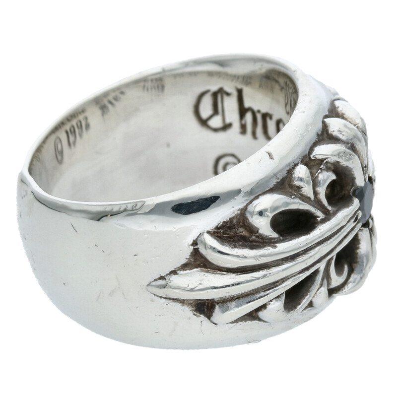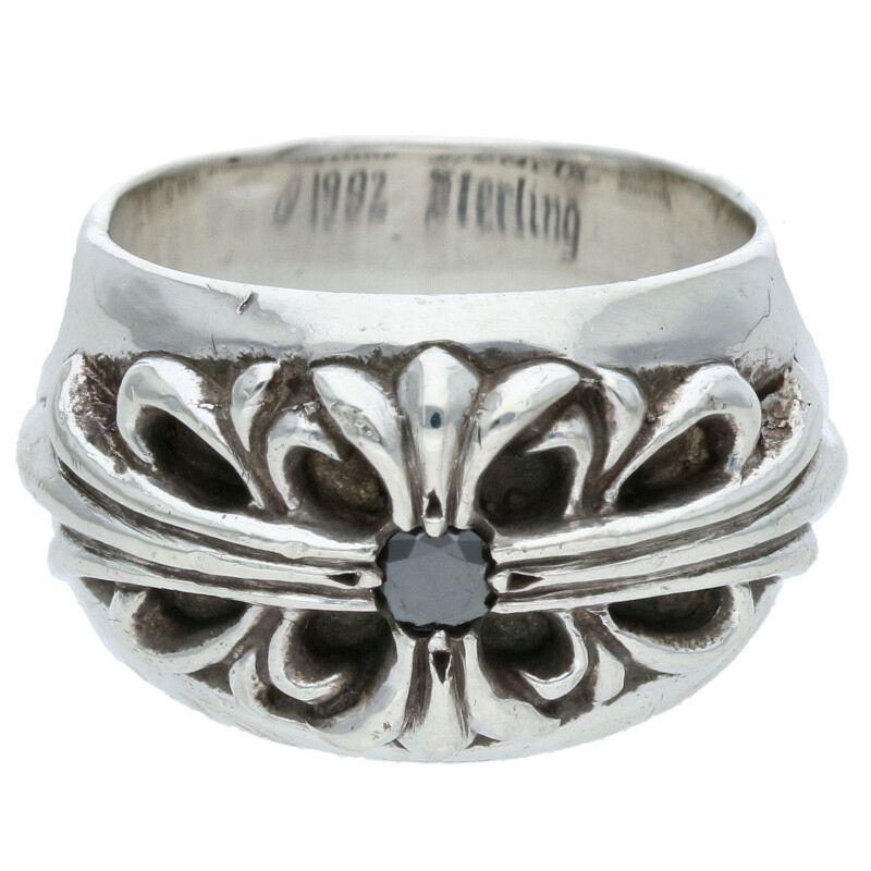 Chrome Hearts FLRL CRS BLKDIA Floral Cross and 1 Black Diamond Silver Ring (Silver and Black, 14.9g) Size: 14 (Product Code: 519052) [OK15] [Accessories] [Pre-owned] bb92#rinkan*B
