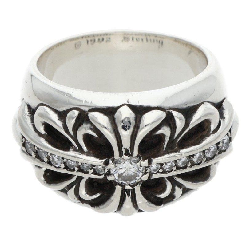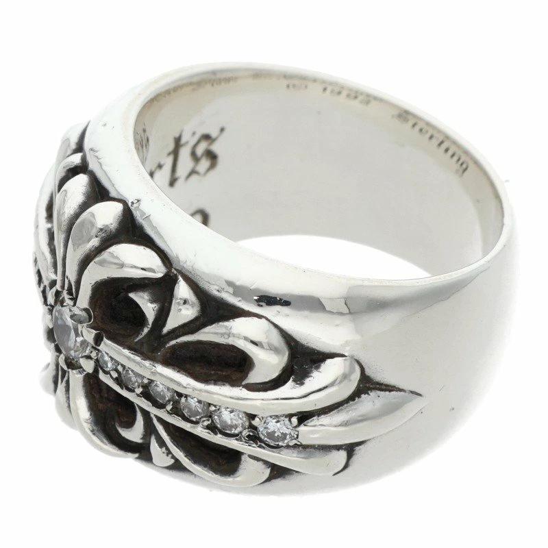 Chrome Hearts FLRL CRS P DMND Floral Cross Pave Diamond Silver Ring (Silver and Clear, 14.96g) Size: 10.5 [521152] [FK04] [Accessories] [Pre-owned] bb223#rinkan*B