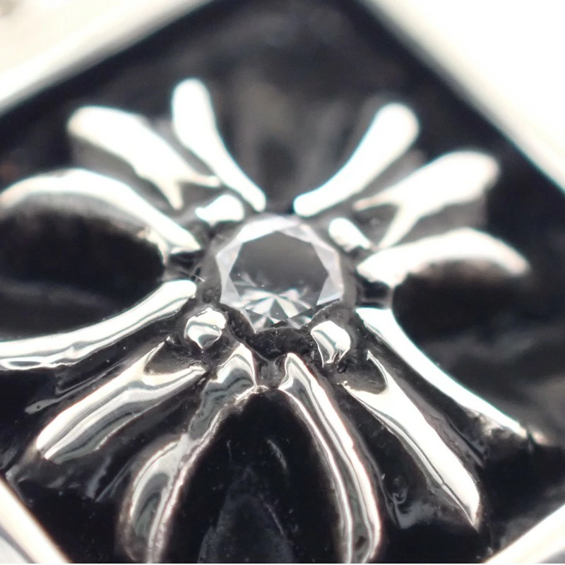 クロスの中央にはダイヤモンドがセッティングされており、無骨な質感の中にさりげないラグジュアリーな輝きを添えています。