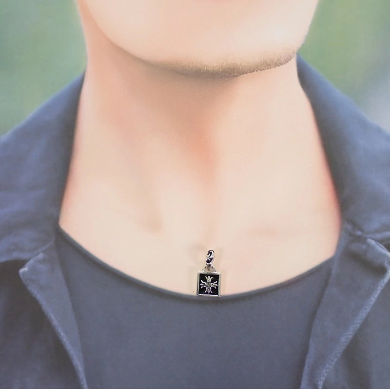 ブランドを象徴するクロスモチーフを、重厚かつ洗練されたフォルムに落とし込んだペンダントトップ。
