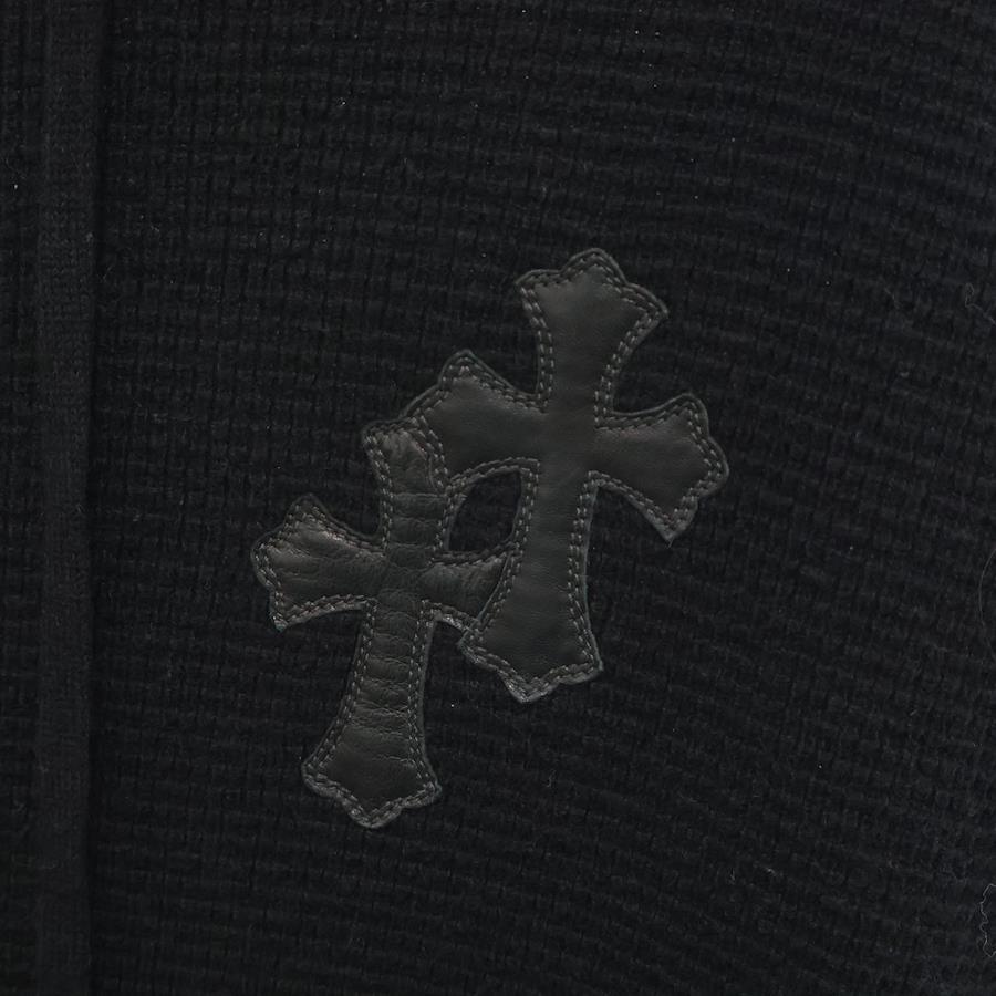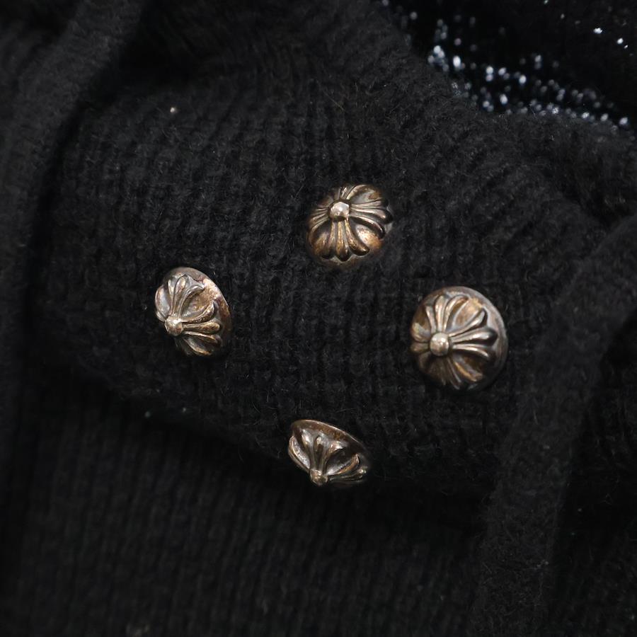 CHROME HEARTS Leather Crosspatch Cashmere Knit Pullover Hoodie Black M Black