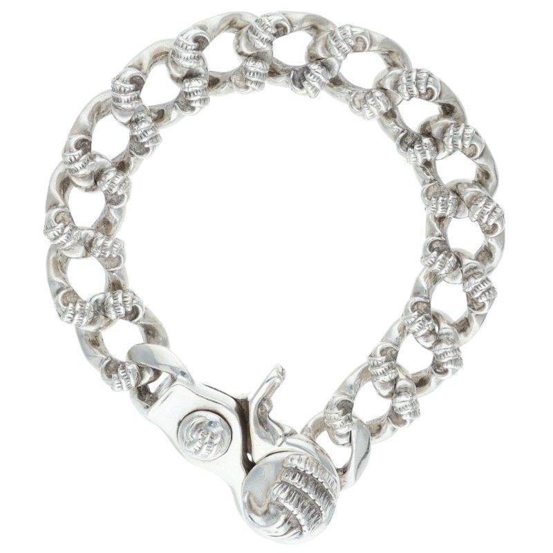 Chrome Hearts LINK CROW CHN LNK Silver Bracelet (Silver, 132.86g) Size: 14 (Product Code: 209052) [SJ02] [Accessories] [Pre-owned] bb14#rinkan*B