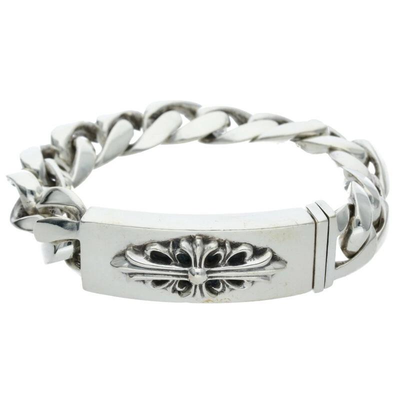 Chrome Hearts LINK ID FLORAL CRS Floral Cross ID Classic Silver Bracelet (Silver, 119.74g) Size: 13 [508052] [GZ11] [Accessories] [Pre-owned] bb21#rinkan*B