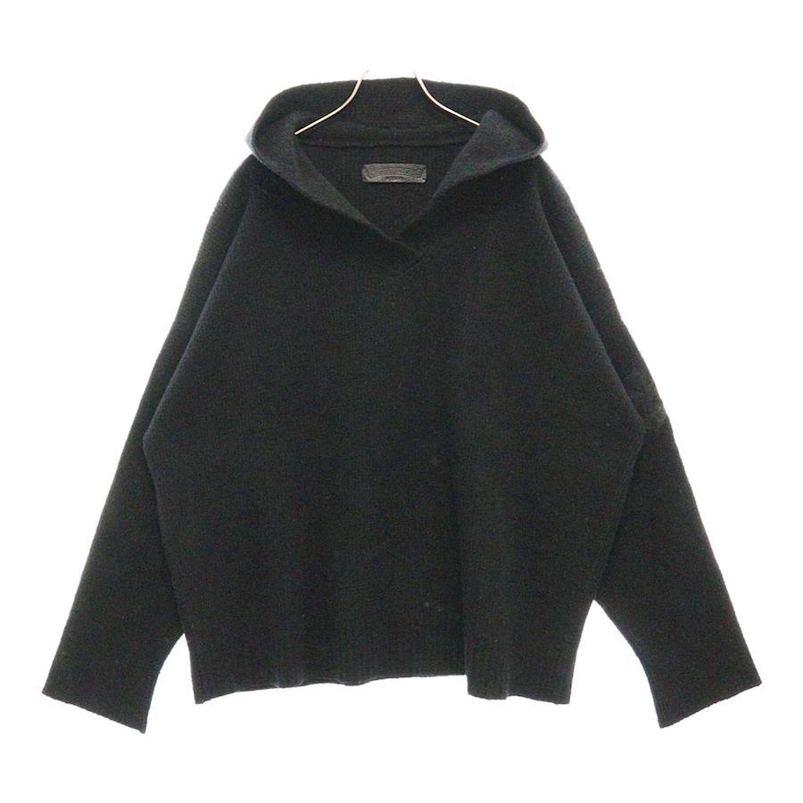 [モデル]MED/LRG ハラコクロスパッチ コットン/ナイロンニット プルオーバーパーカー ブラック