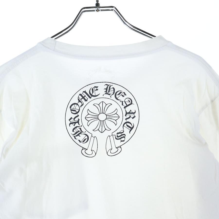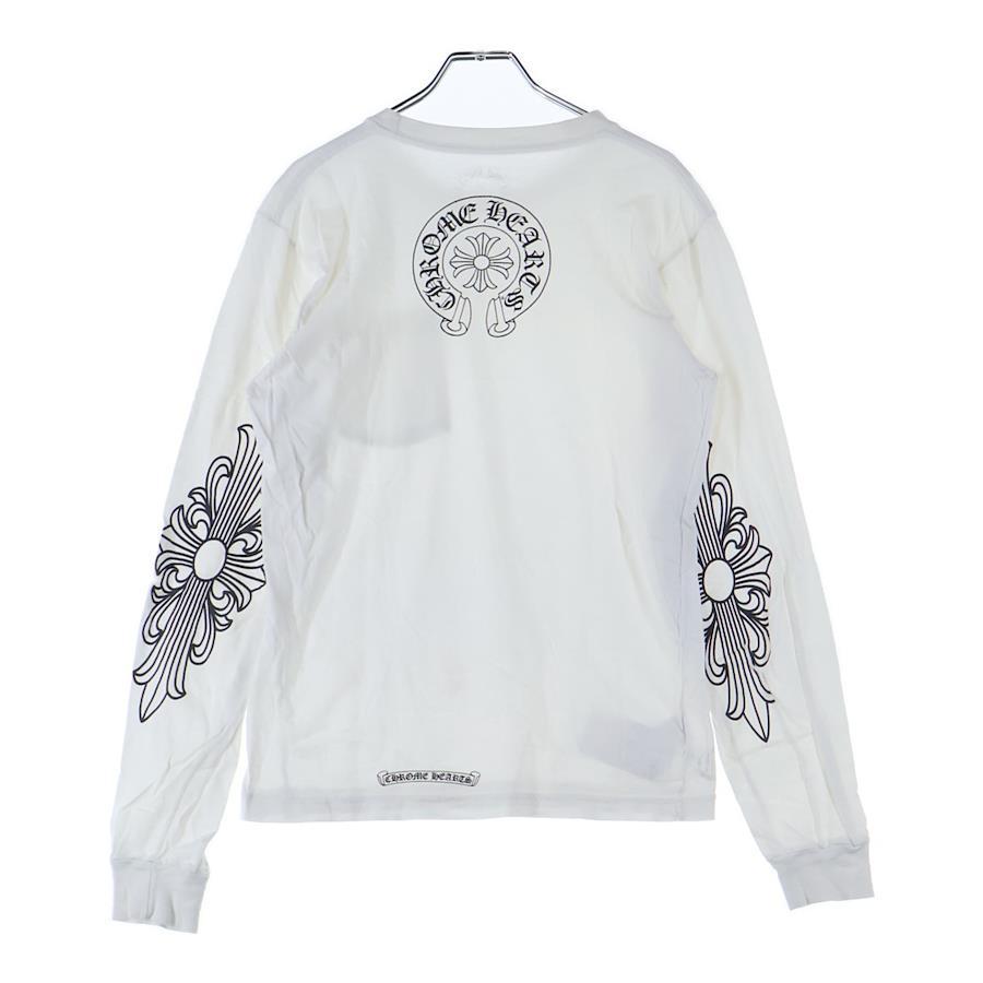 [モデル]Neck Rogo ネックロゴ アームフローラル バックホースシュー プリント クルーネック長袖Tシャツカットソー ホワイト