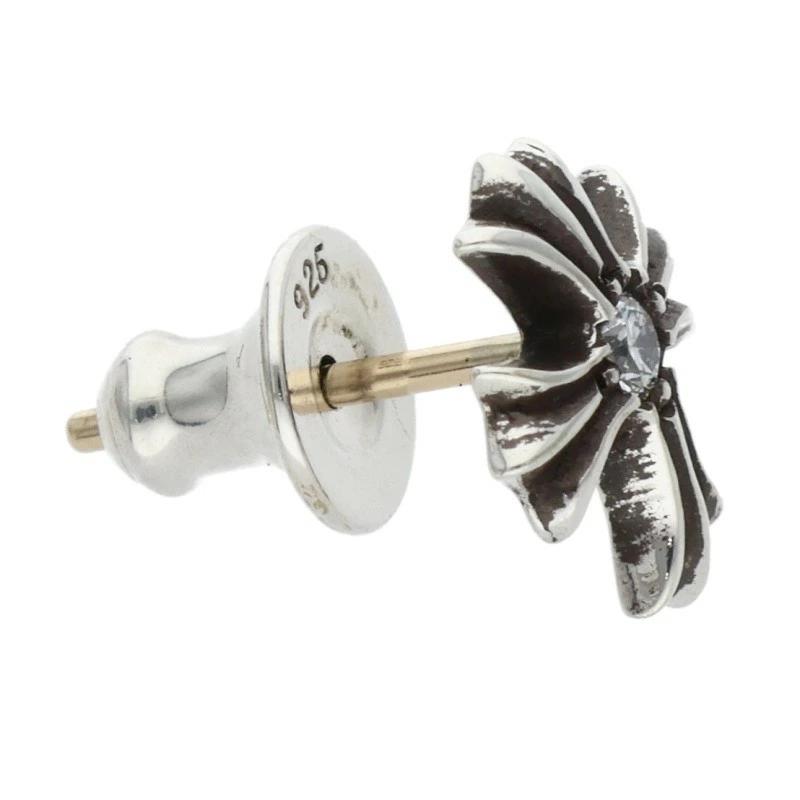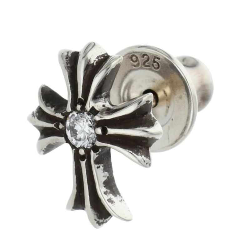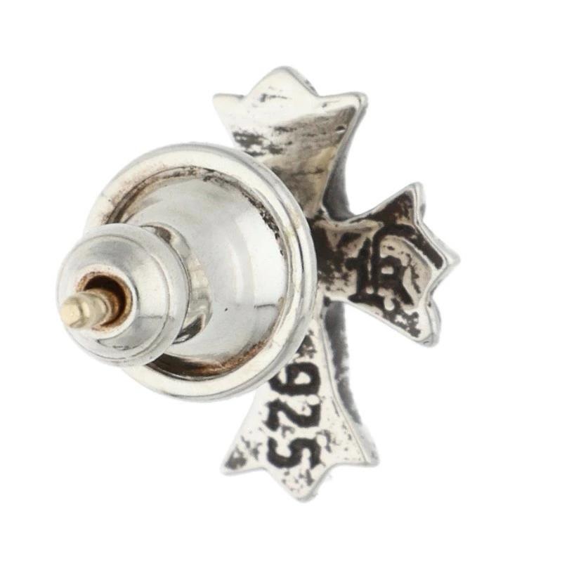 Chrome Hearts No. 2 CH CRS DIA CH Cross Stud Earrings with 1 Diamond (Silver and Clear, 0.76g) [710152] [GZ11] [Accessories] [Pre-owned] bb376#rinkan*B