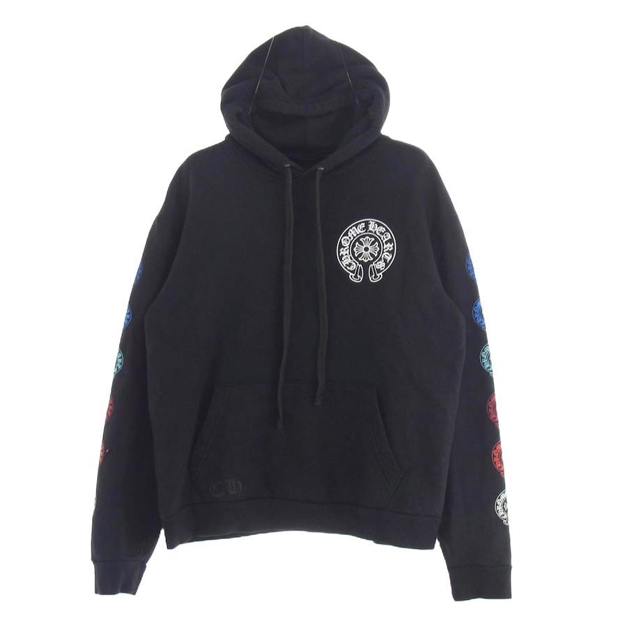 CHROME HEARTS (no original) Multi-horseshoe print pullover hoodie, black, size M [used]