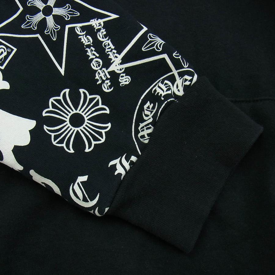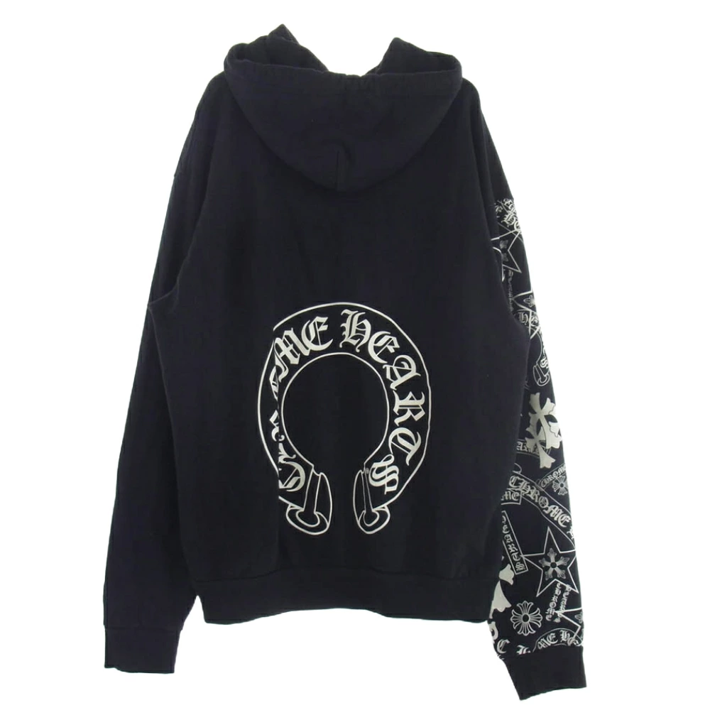 CHROME HEARTS (no original) STENCIL HOODIE with stencil sleeves and a horseshoe print on the back. Pullover hoodie in black, size L. Men's. [Used]