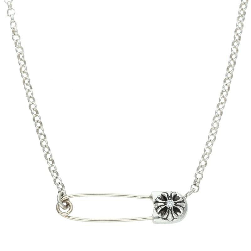 Chrome Hearts SAFETY PIN R18 1-Diamond Safety Pin Roll Chain Silver Necklace (Silver and Clear, 6.9g) Size: 18 inches [521152] [OS06] [Accessories] [Pre-owned] bb453#rinkan*S