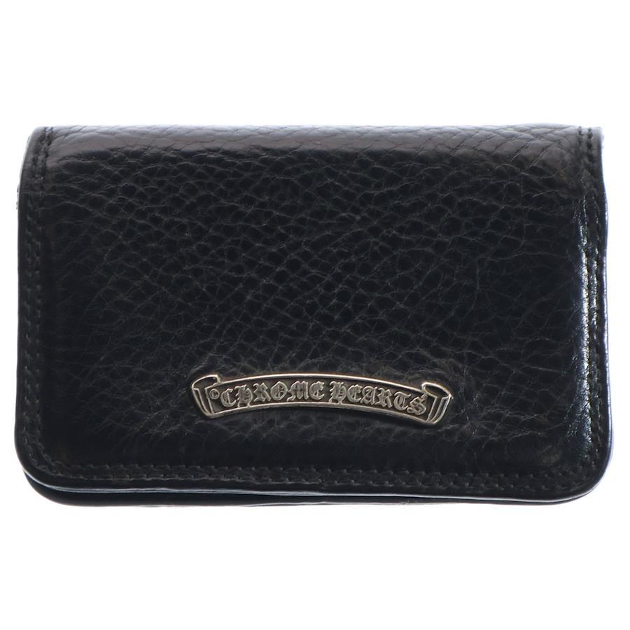 Chrome Hearts Scroll Label Leather Card Case, Black/Silver - Black