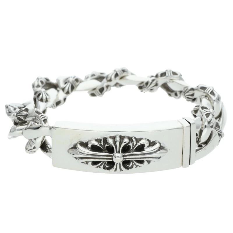 Chrome Hearts Size: 13LINK 0 ID FLORAL CRS/Floral ID Fancy Silver Bracelet