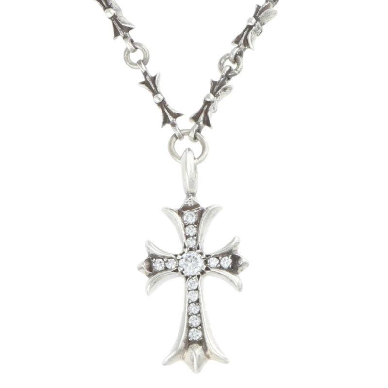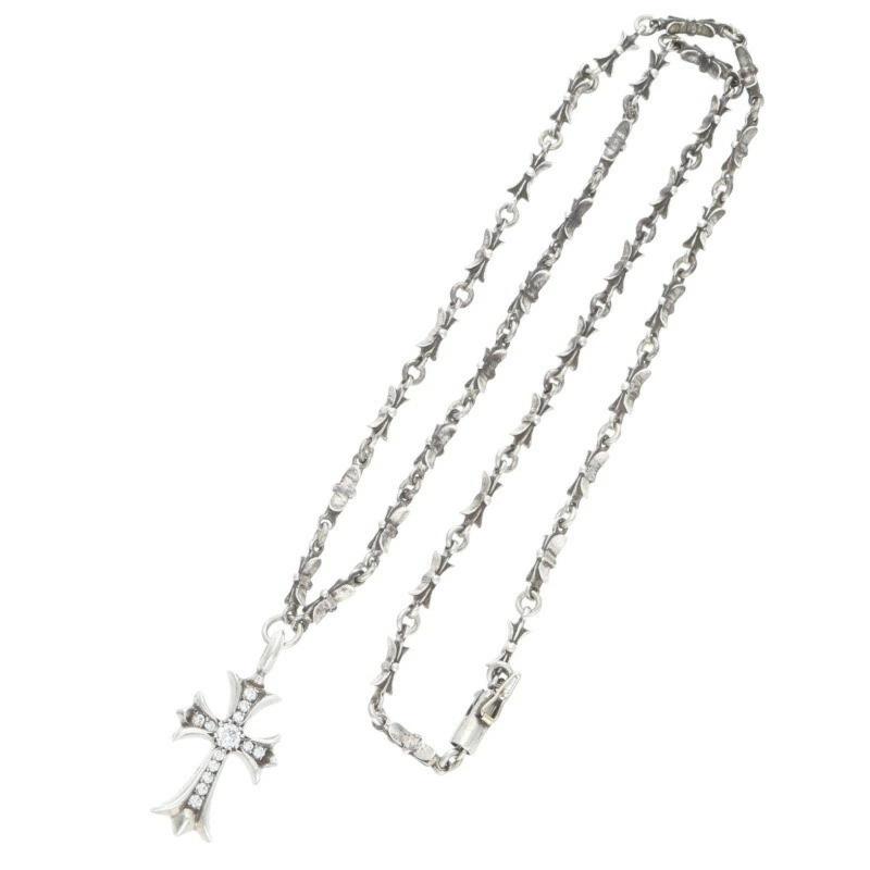 Chrome Hearts Size: 20 inch 0 Fat Cross / Tiny Bar Chain Silver Pave Diamond Necklace