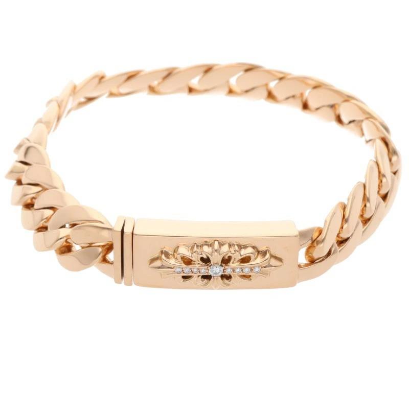 Chrome Hearts Size: 21LINK 0 22K ID BBY FLRL P D Baby ID Floral Cross Pave Diamond Gold Bracelet