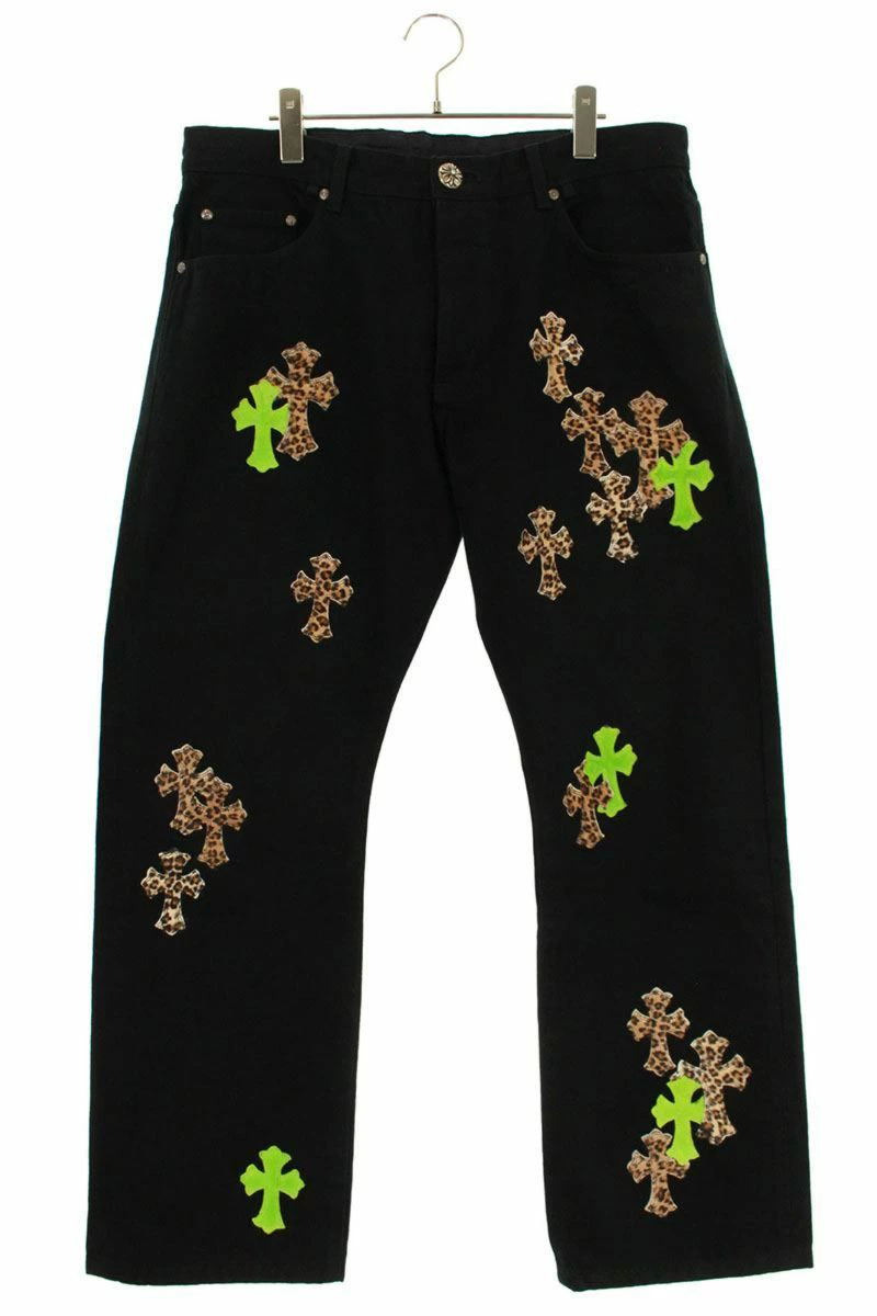 ランク:A (使用感が少ない商品)状態備考:所々に若干の擦れがありますブランド:クロムハーツサイズ:36インチ色:ブラック×グリーン×ブラウン)実寸:ウエスト幅45.5cm 股上29cm ワタリ幅34.5cm 股下76cm 裾幅23cm重さ:-素材:(表地) コットン (パッチ部分)付属品:なしその他特徴:ボタンフライデザインです管理番号:10831-250724-0038