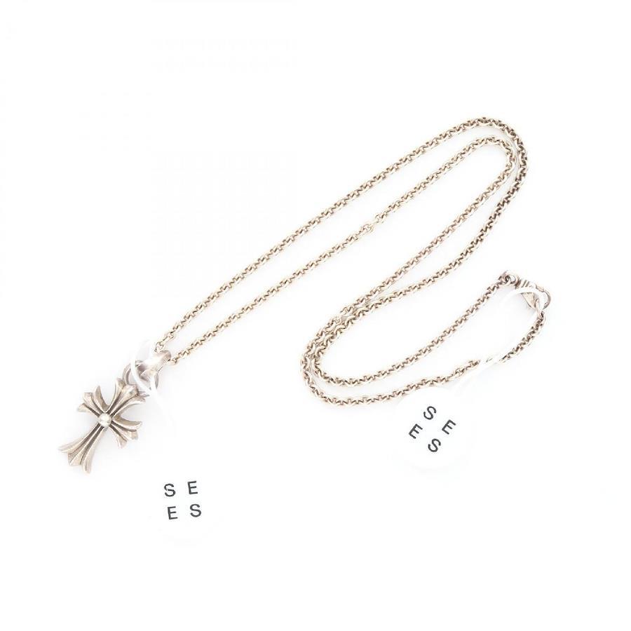 Chrome Hearts Small Cross Necklace with Bail and Paper Chain in Sterling Silver (P0046809)