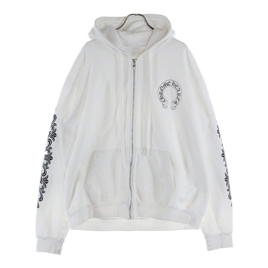 [モデル]SWTSHRT HD ZIP バックホースシュー 袖フローラルプリント ジップアップフーディーパーカー ホワイト