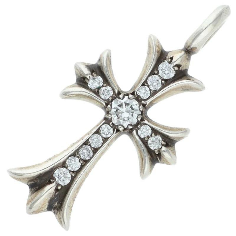 Chrome Hearts TNY CRSF P DMND Tiny Fat Cross Pave Diamond Pendant Top (Silver x Clear 5.59g) [902152] [OK15] [Accessories] [Pre-owned] bb422#rinkan*A