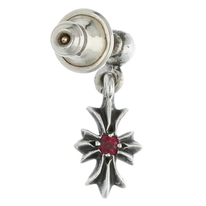Chrome Hearts TNY E CH PLS 1 RBY Tiny ECH Plus Drop 1 Ruby Silver Earrings (Silver and Red, 1.10g) [101142] [SJ02] [Accessories] [Pre-owned] bb187#rinkan*B
