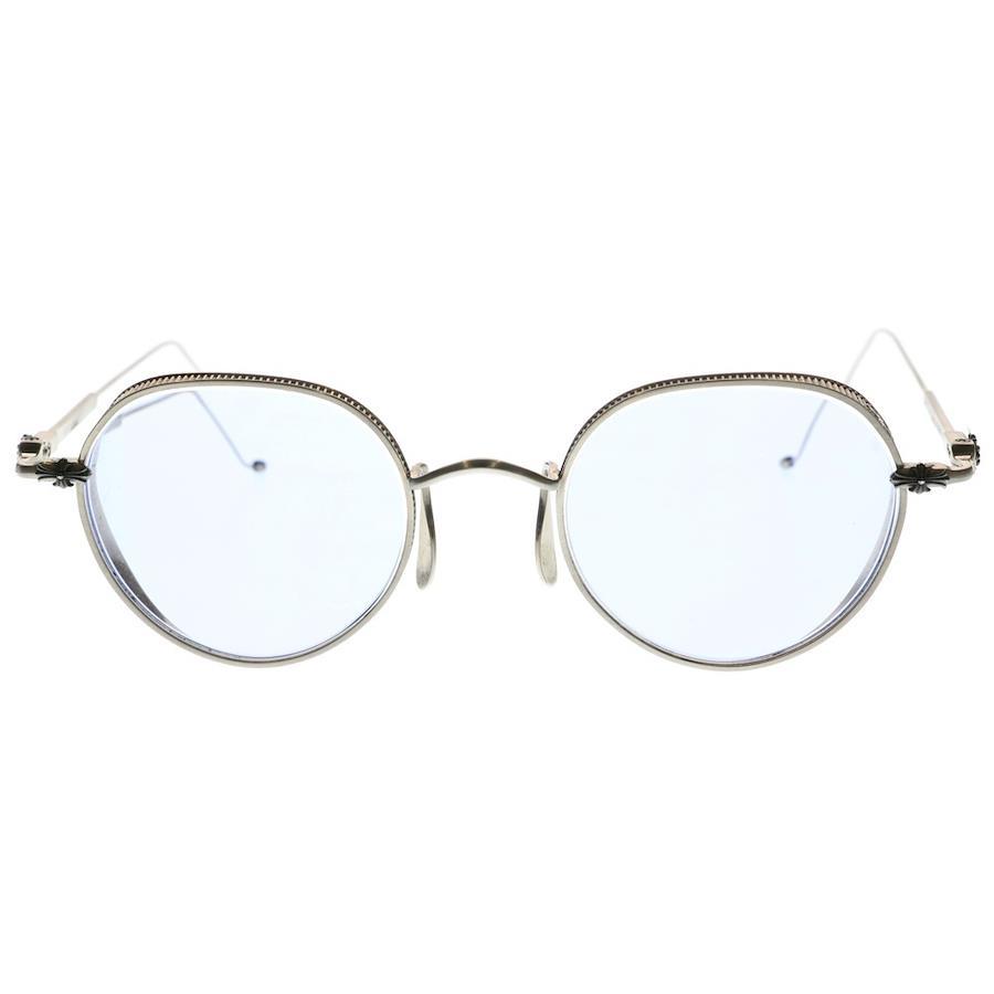 ■商品情報[商品番号]1625H240013[ブランド]CHROME HEARTS(クロムハーツ)[モデル]VAGASOREASS サイドクロステンプル ラウンドフレーム アイウェア サングラス 度入り シルバー 48□22‐147[サイズ]フロントフレーム幅:13.2センチ レンズ高さ:4.2センチ レンズ幅:4.6センチ表記サイズ:48□22ー147■状態・コンディション[状態ランク]ランク B使用感有りレンズ/鼻パッド部分に汚れ有りテンプルに若干のくすみ有り[備考]度入り