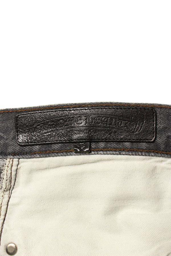 ランク:D (かなり使用感があり、破れやシミなどのダメージがある商品)状態備考:古着を使用している為、汚れ等のダメージがあります股ジミがあります股下部分にリペア跡がありますフロント左中央、裾、ウエスト等に汚れがあります全体的に色褪せ、若干の毛羽立ちがありますブランド:クロムハーツサイズ:31インチ色:ブラック×シルバー実寸:ウエスト幅41cm 股上28.5cm ワタリ幅32cm 股下84.5cm 裾幅19cm重さ:-素材:(表地) コットン (皮革部分) 羊革付属品:なしその他特徴:ボタンフライデザインです管理番号:10831-251026-0173
