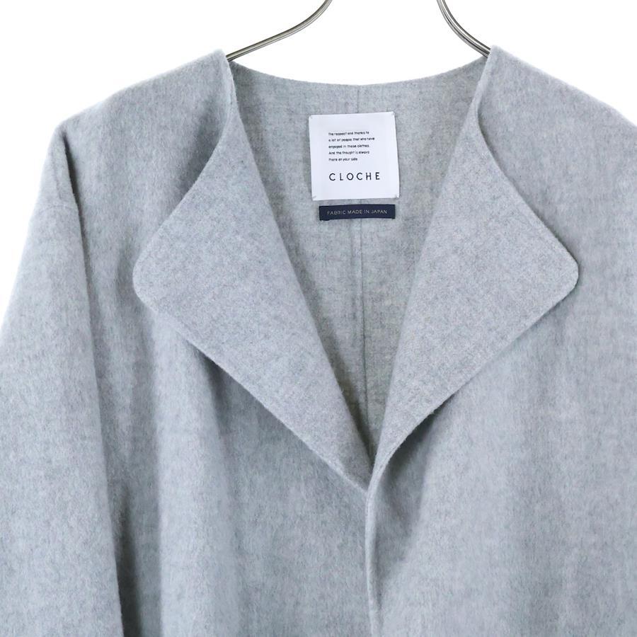 [モデル]CLOCHE ノーカラー ウールコート グレー