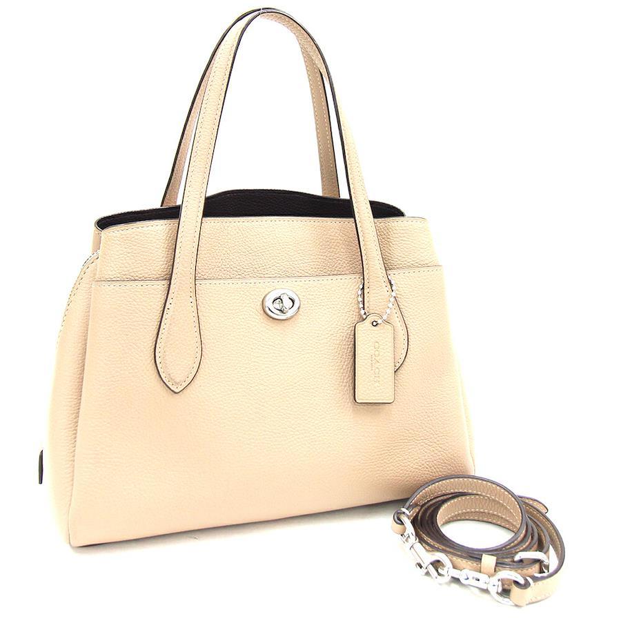 コーチ2WAYハンドバッグローラキャリーオール91740ベージュレザー中古ショルダーバッグ斜め掛けターンロックレディースCOACH
