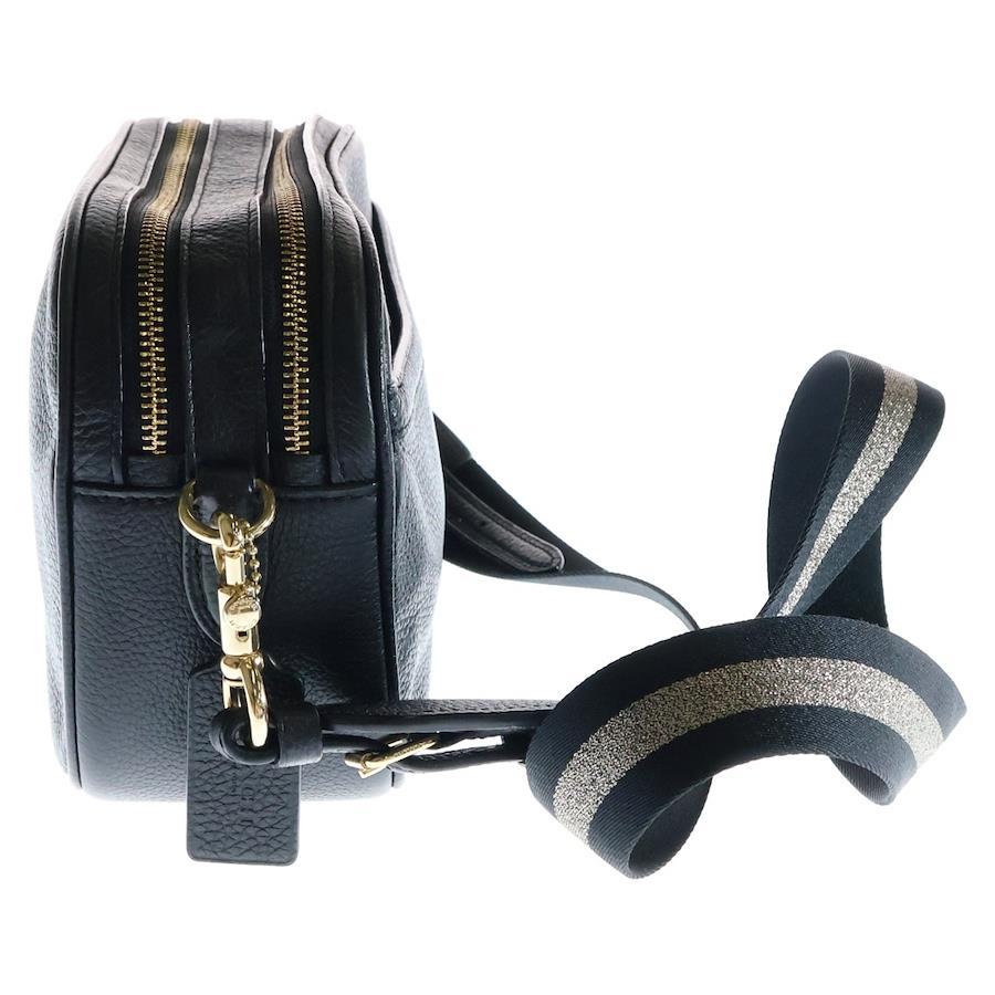[モデル]ジェスホース&キャリッジロゴデザイン ストラップ付き 2WAY レザー ハンドバッグ ショルダーバッグ ブラック