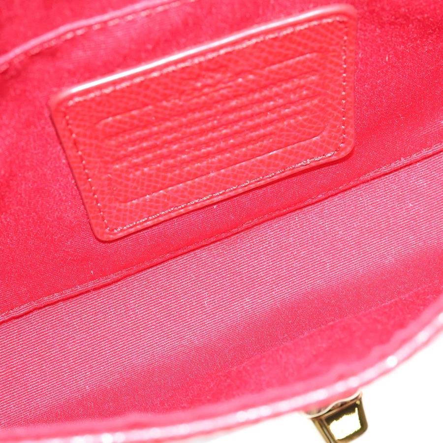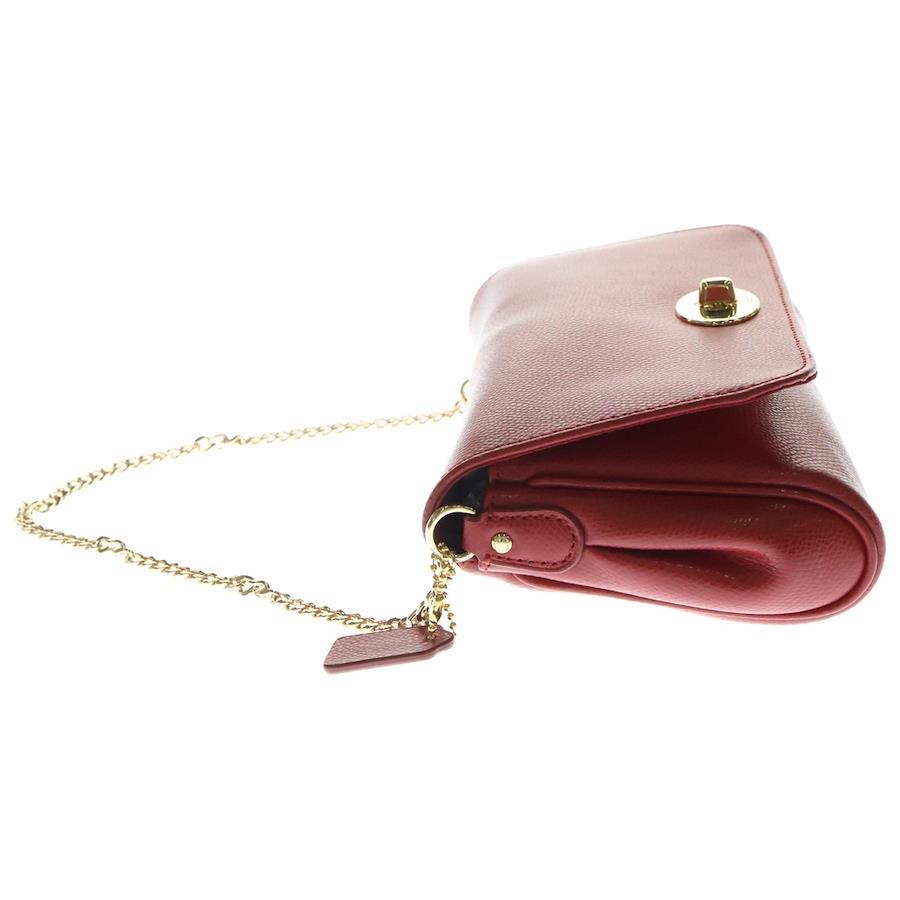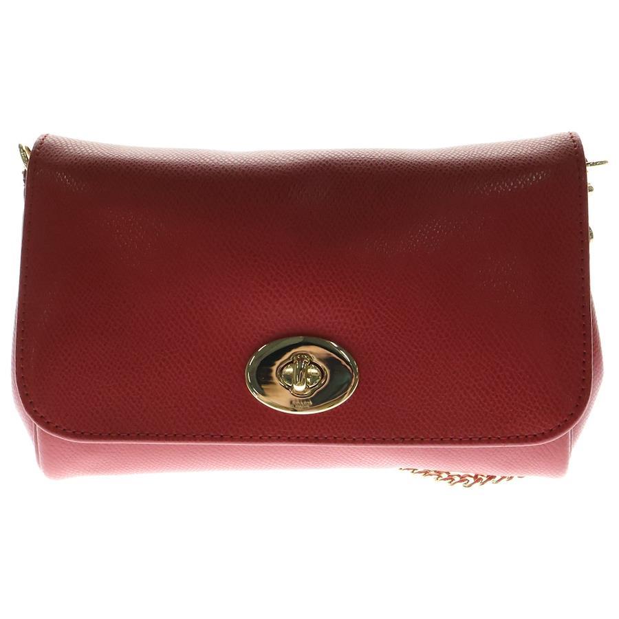 [モデル]ロゴプレート レザー チェーンショルダーバッグ ゴールド金具 レッド 〇