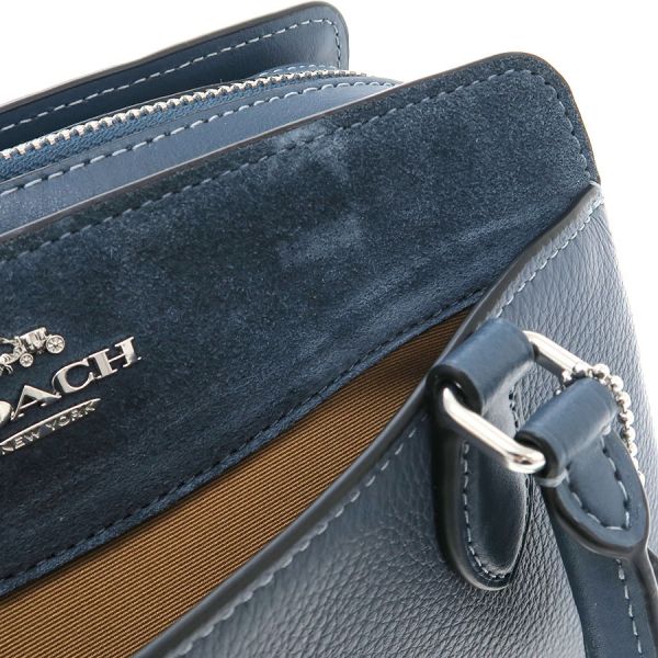 コーチのミニ ダーシー キャリーオールのご紹介です!前後の上部や側面がスエードに切り替わったデザイン。ハンド、ショルダーの使い分けができます。開閉はファスナー式で、中はポケット等無し。正面側にポケット2つ、背面側にポケット1つあり。底部分には鋲が4つあり。ショルダーストラップは両端にはフックがあり、バック留めで7段階長さ調整可。☆状態は、本体の型崩れ、表面のスレ・薄汚れ、角や縁のスレ、正面ポケット口の内側や側面、持ち手の根元裏側スエードにスレ・押し跡、ファスナーや金具の小傷・くすみ、中の薄汚れが見受けられますが、きれい目なお品ですよ!いかがですか?