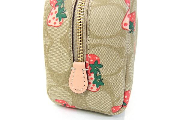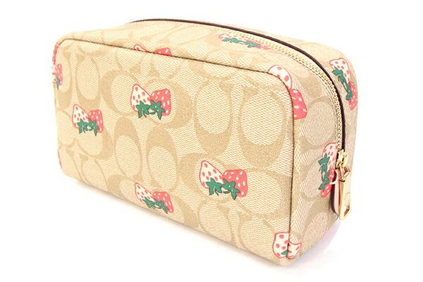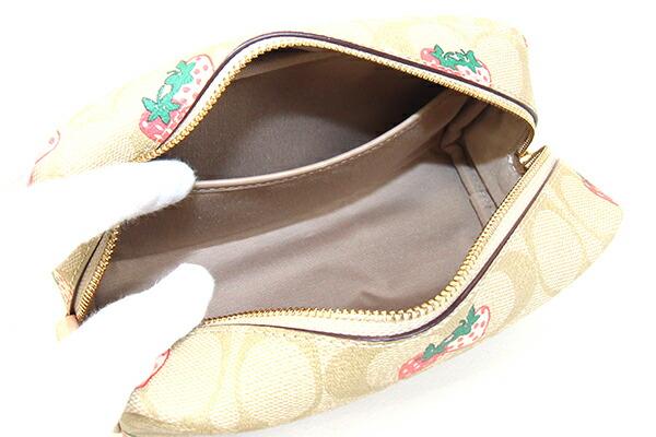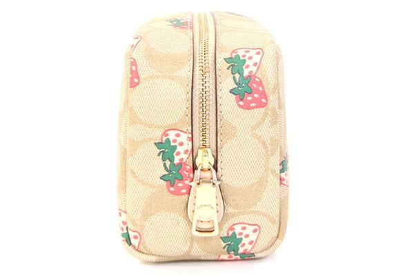 コーチポーチCB604ベージュPVCレザー中古コスメメイクポーチイチゴ小物入れレディースCOACH