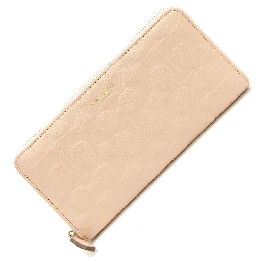 コーチラウンドファスナー長財布シグネチャーピンクベージュレザー中古ロングウォレットレディース女性COACH