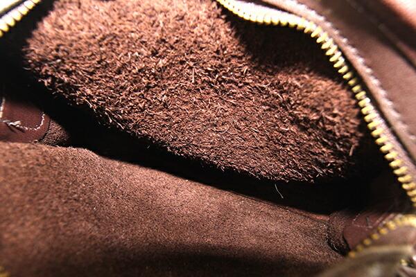 状態 | 外側:型崩れあり。所々小キズ・スレ・シワあり、特にポケット上部に深いシワあり。ショルダーに薄汚れあり。フチ所々にスレによる色褪せあり。 内側:スレ、薄汚れ、毛羽立ちあり。 金具:小キズ、クスミ変色・色落ちあり。 |