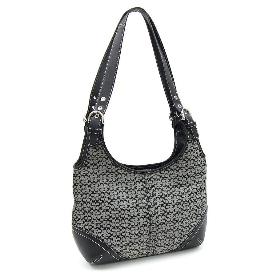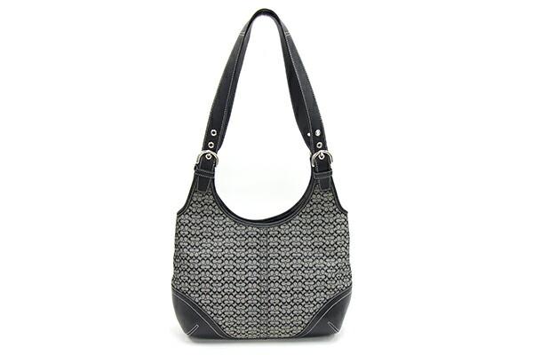 コーチトートバッグミニシグネチャー6800ブラックキャンバスレザー中古肩がけ黒レディースCOACH