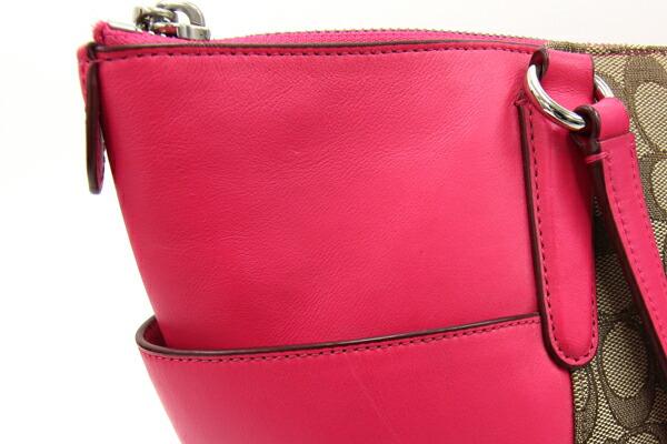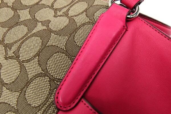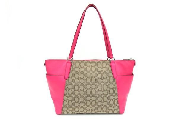 コーチトートバッグアウトラインシグネチャーアヴァF54797ピンクベージュキャンバスレザー中古肩掛けロゴレディースCOACH