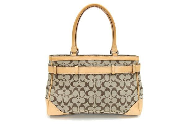 コーチトートバッグシグネチャーF08K07ベージュキャンバスレザー中古肩掛けショルダータッセルレディースCOACH