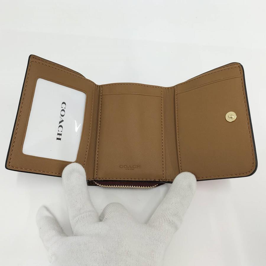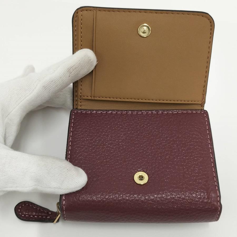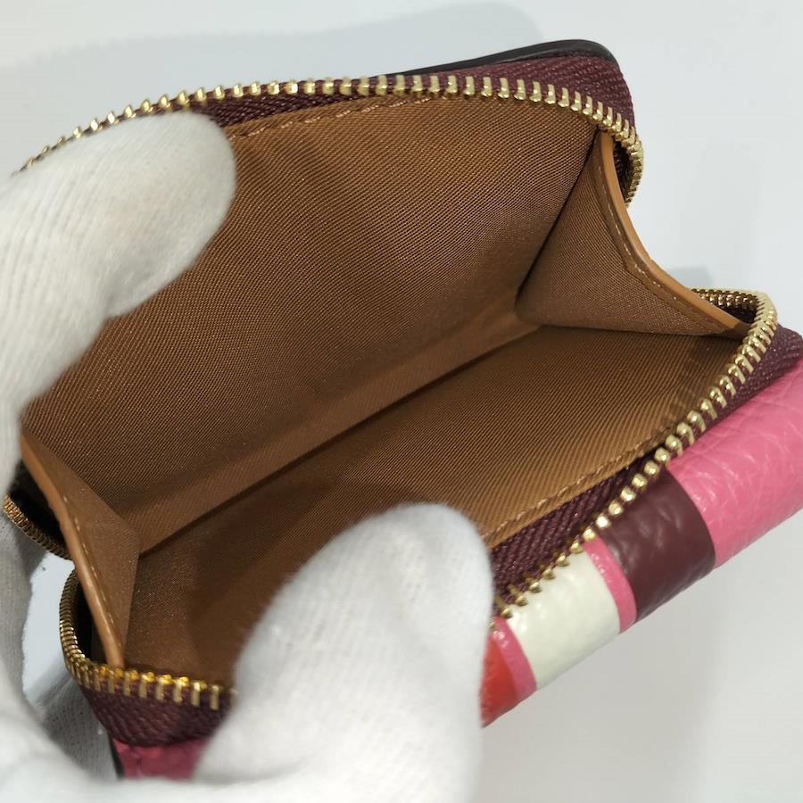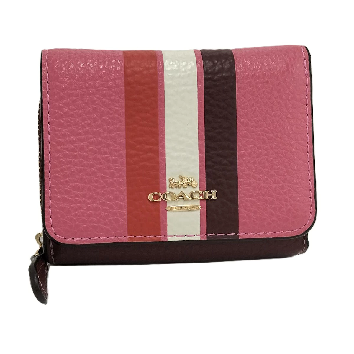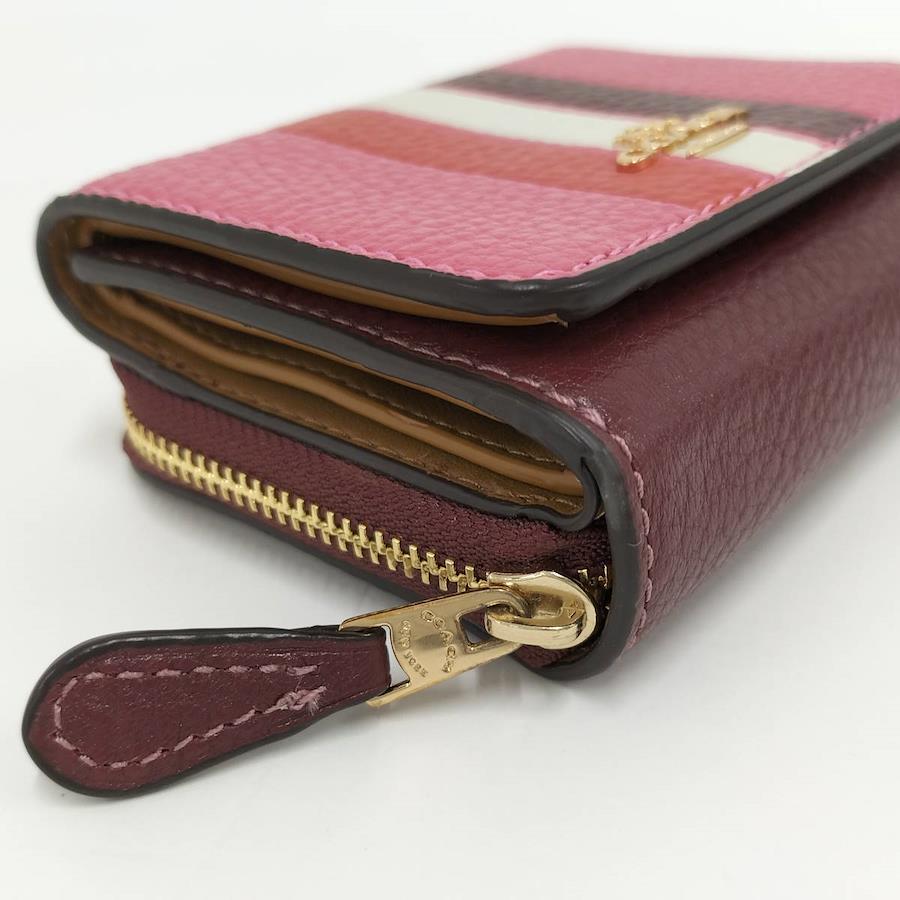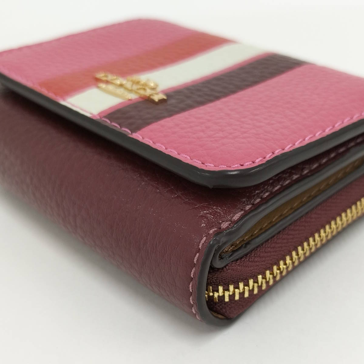 COACH Tri-fold Wallet with Zip-Around Stripe Leather in Pink and Bordeaux, C4525
