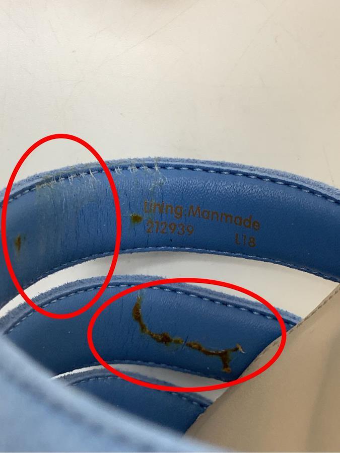 【管理番号】0330646h0222488【ブランド・アイテム】COLE HAAN シューズ【性別タイプ】レディース【表記サイズ】6その他ワイズ B【実寸サイズ】ヒール:約6.5cmワイズ:約8.3cm【カラー】ブルー【素材】画像参照【状態の詳細】USED品のため、ある程度の使用感やダメージが見受けられるお品物となります。【汚れ・シミ】内側の複数箇所に色付きや付着物がございます。【傷・ツレ】内側甲付近の複数箇所に生地のひび割れがございます。【毛玉・毛羽立ち】特に目立つものはございません。【使用感】あり【こんな方におススメ】少しぐらいのシミやダメージが目についても気にならない方にオススメ【付属品】付属品なし【備考】