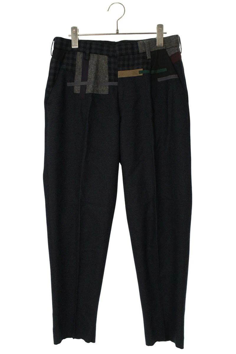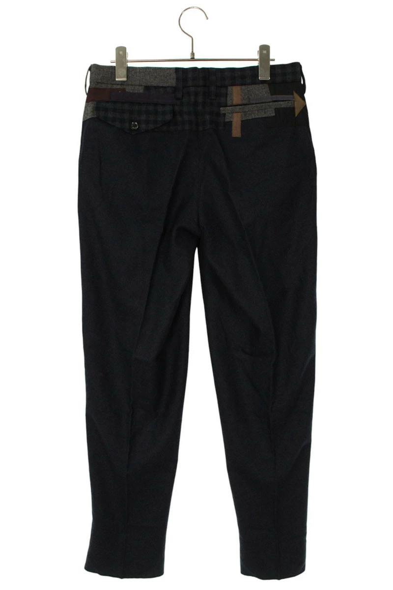 ランク:B (使用感がある商品)状態備考:ウエスト内側に汚れがあります裾に擦れがあります裾が縫い上げられていない商品ですブランド:カラーサイズ:1色:ネイビー×グレー実寸:ウエスト幅38cm 股上23.5cm ワタリ幅31.5cm 股下74.5cm 裾幅18cm重さ:-素材:(表地) ウール98%、ポリウレタン2% (裏地) キュプラ (別布1) ポリエステル (別布2) ウール90%、ナイロン10% (テープ1) ポリエステル65%、ポリウレタン35% (テープ2) コットン (テープ3) レーヨン付属品:なしその他特徴:製品の特性上色落ち、色移りする場合があります管理番号:10829-251024-0221