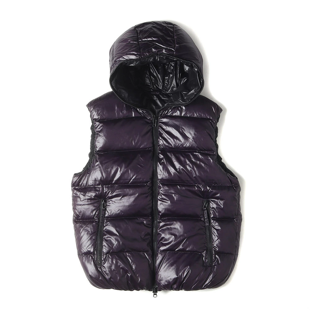 | 商品説明 | 独特の光沢感のシャイニーナイロン素材を使用し、フーデッドデザイン、ダブルジップ仕様で仕上げられたダウンベストです。 |