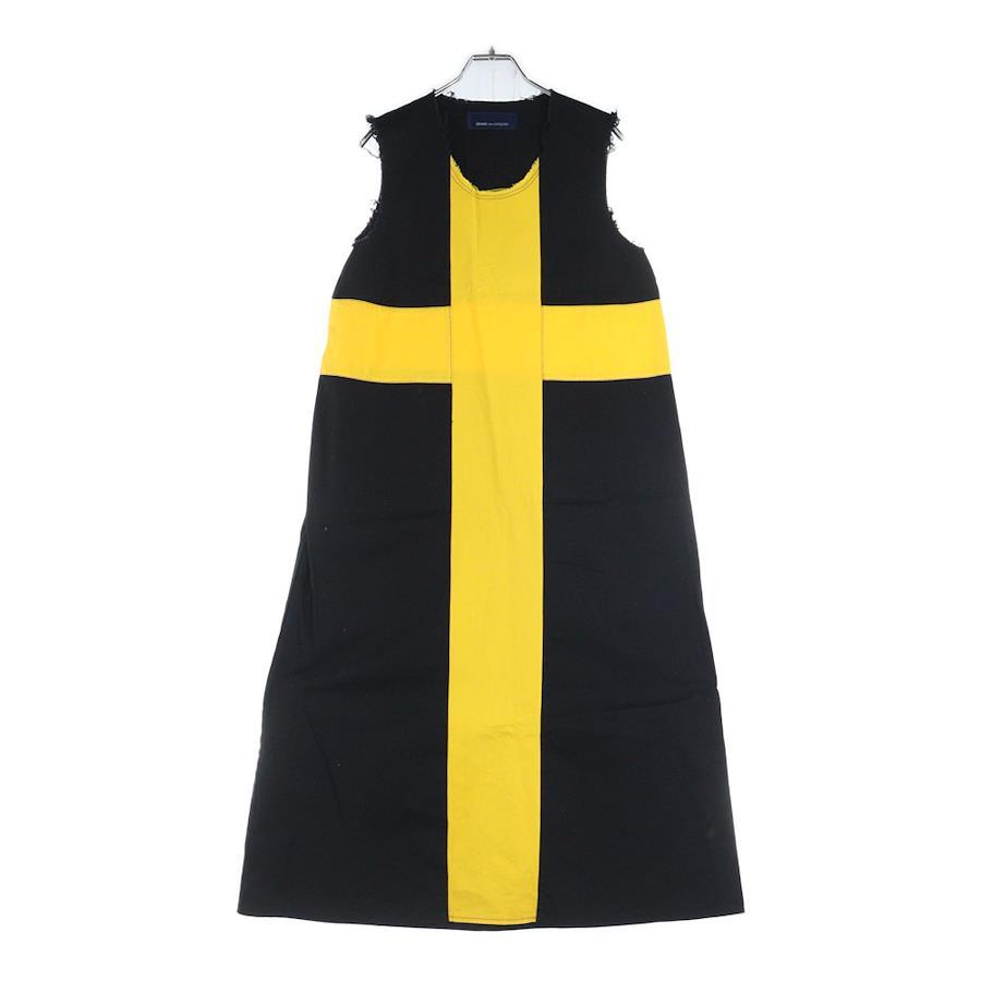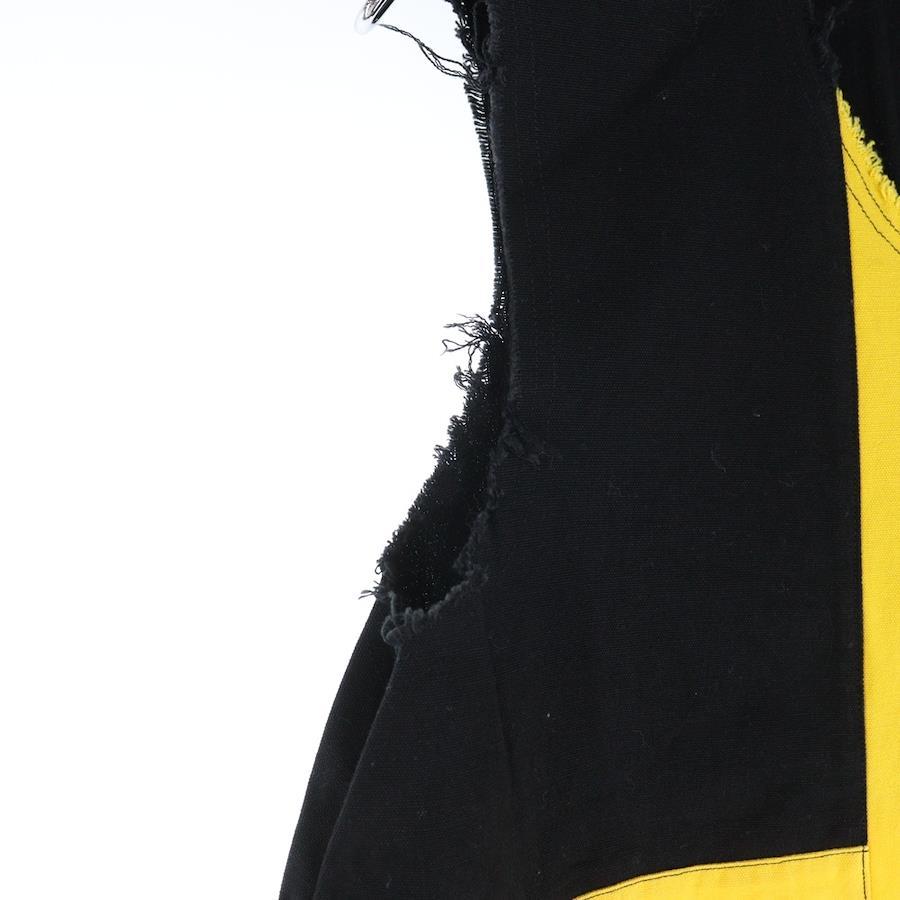 [モデル]90S ダメージ加工 イエローライン カットオフ ノースリーブ ワンピース ドレス ブラック/イエロー D-TK9210 AD1993 レディース
