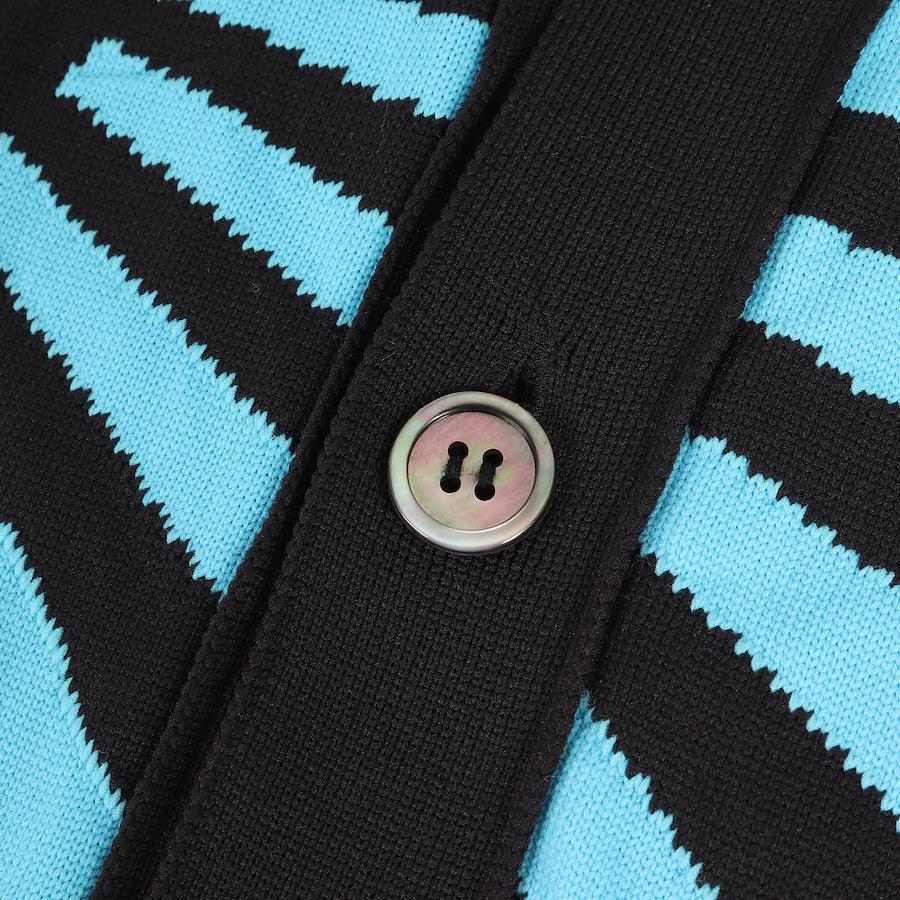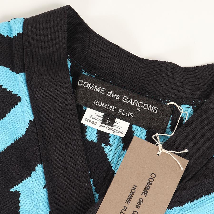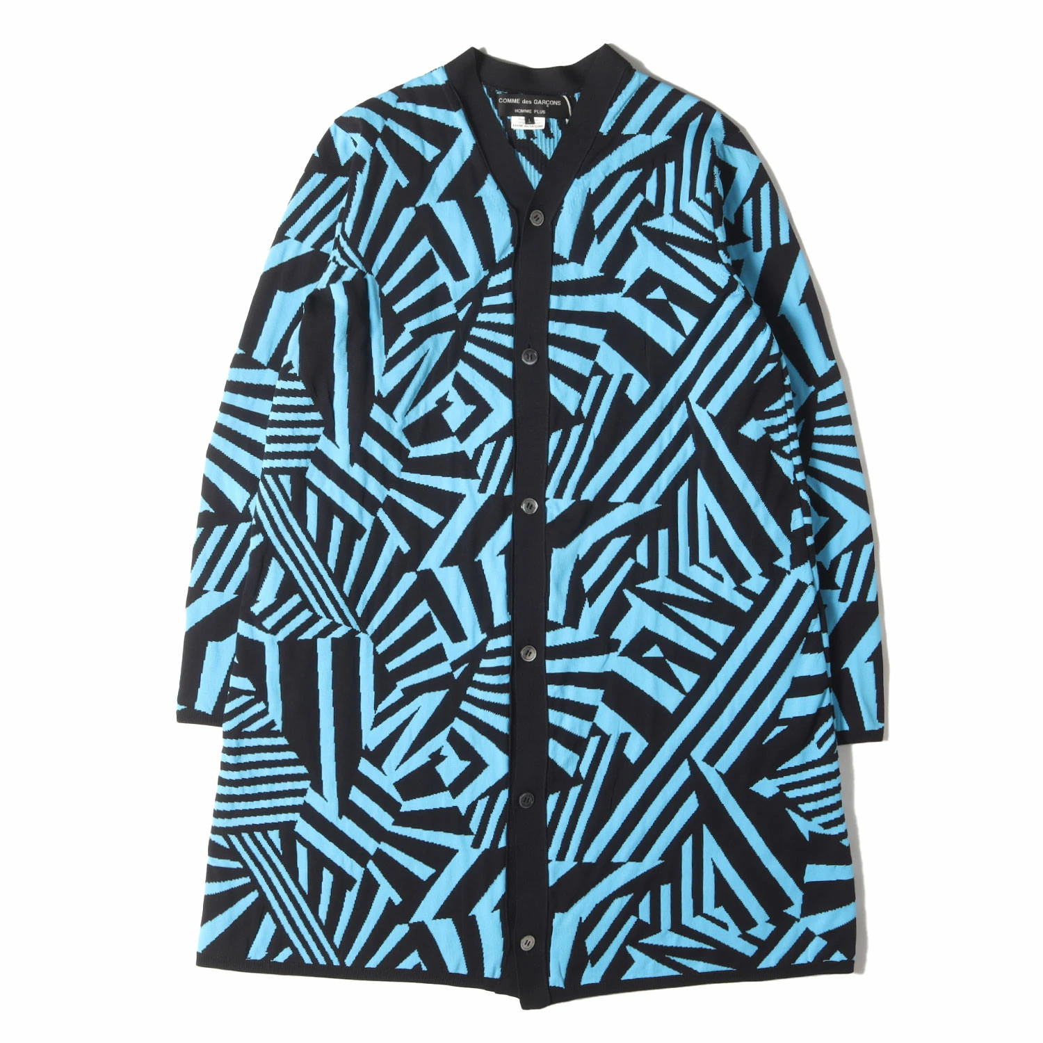 COMME des GARÇONS HOMME PLUS Cardigan, Black/Blue, Size L | Geometric Jacquard Poly Knit Long Cardigan PK-N013 | Men's Top, Made in Japan, Pre-owned, Like New, K4617