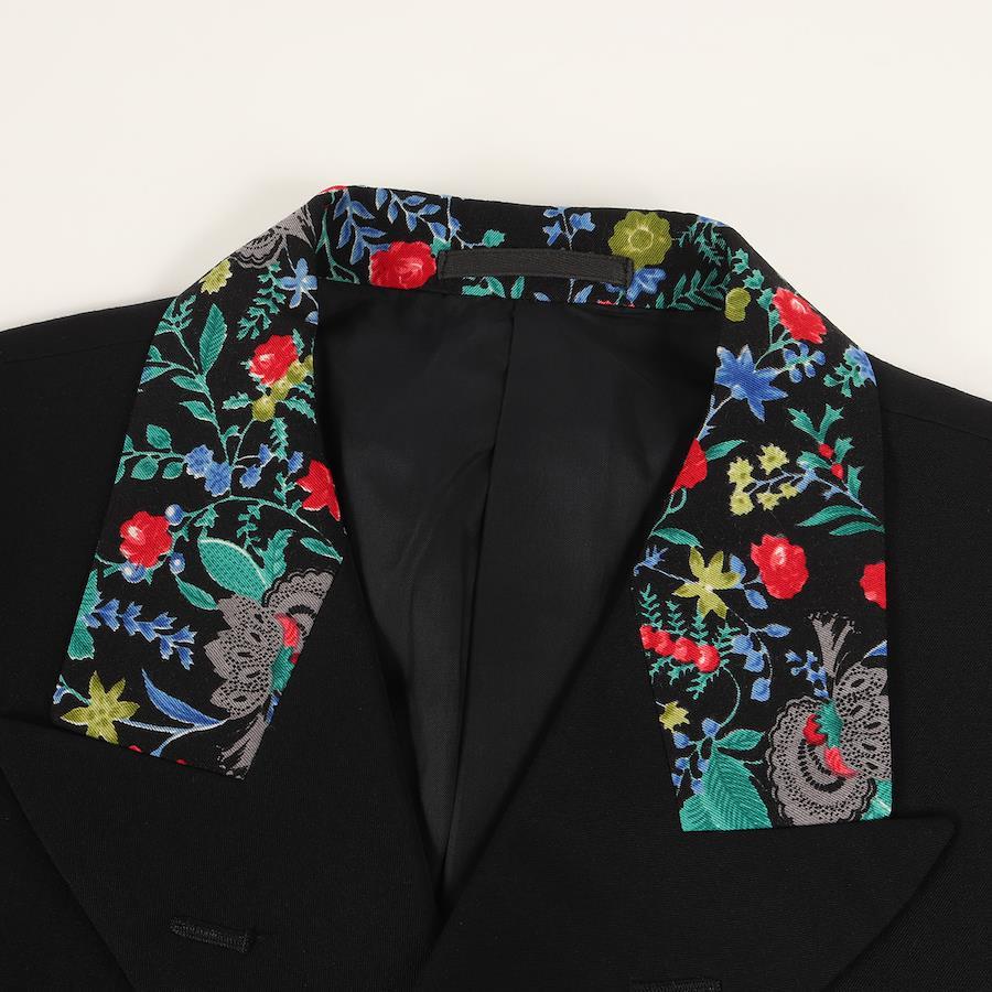| 商品説明 | ・ギャバジンクロス ・フラワー総柄プリントカラー ・ピークドラペル ・フロントツイン3ボタン ・フロントダーツあり ・袖口開き見せ3つボタン ・ノーベント仕様 |