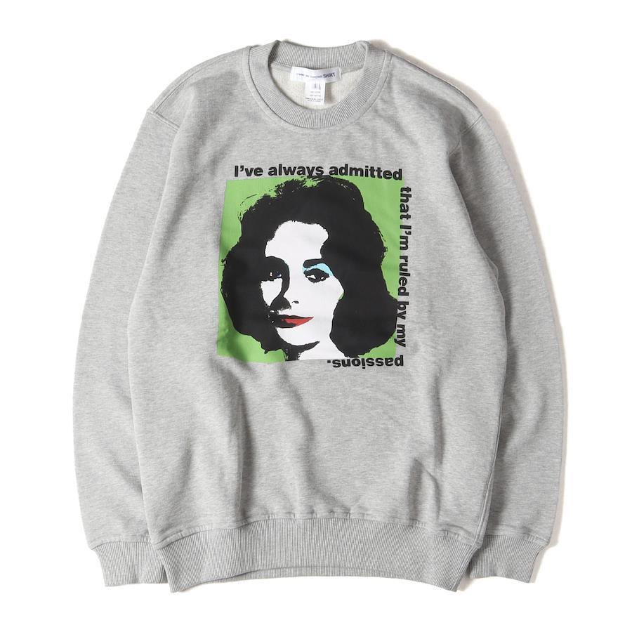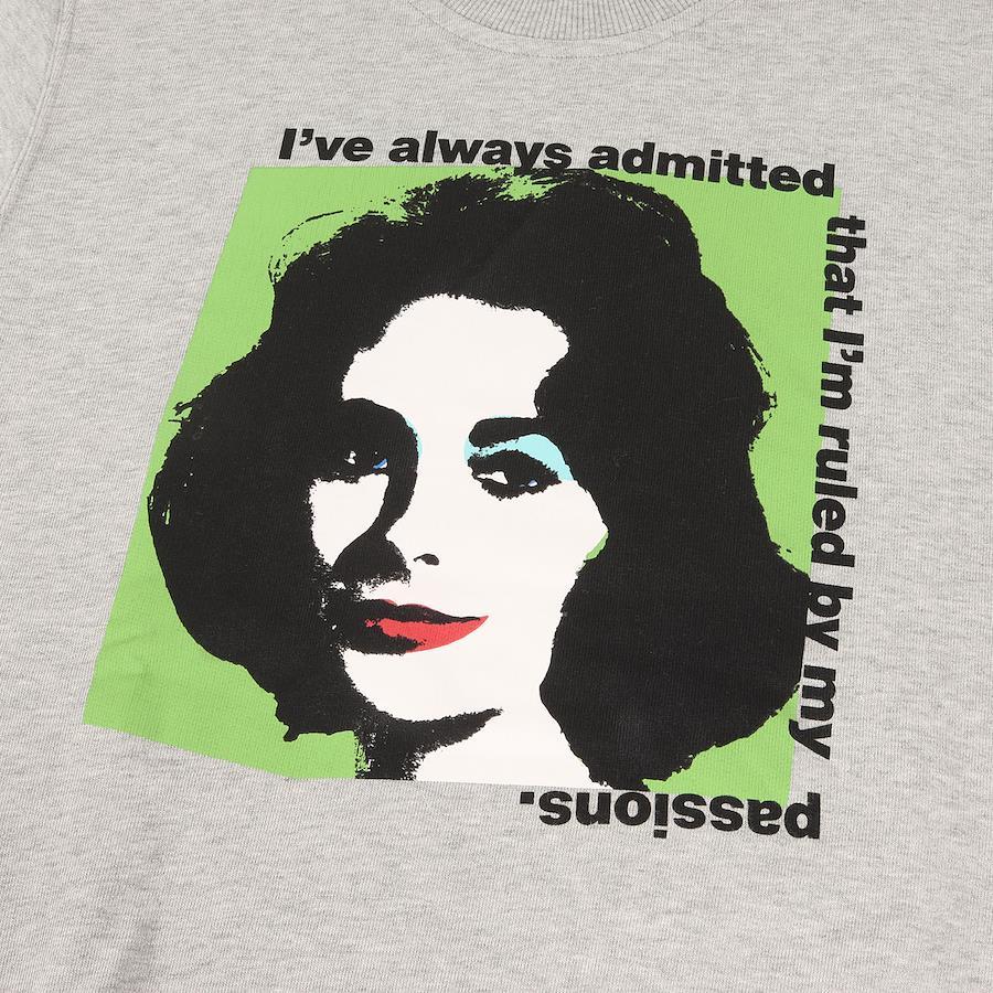 | 商品説明 | やや薄手のコットン裏毛スウェット生地を使用し、フロントにAndy Warholによるエリザベステイラーのポートレート作品"Silber Liz(Ferus Type)"を大胆に大判であしらわれたクルーネックスウェットです。 |