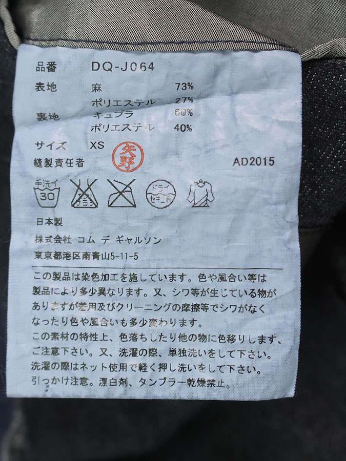 COMME des GARCONS HOMME DEUX Size: XS 0 DQ-J064 AD2015 Linen-blend Polyester Jacket